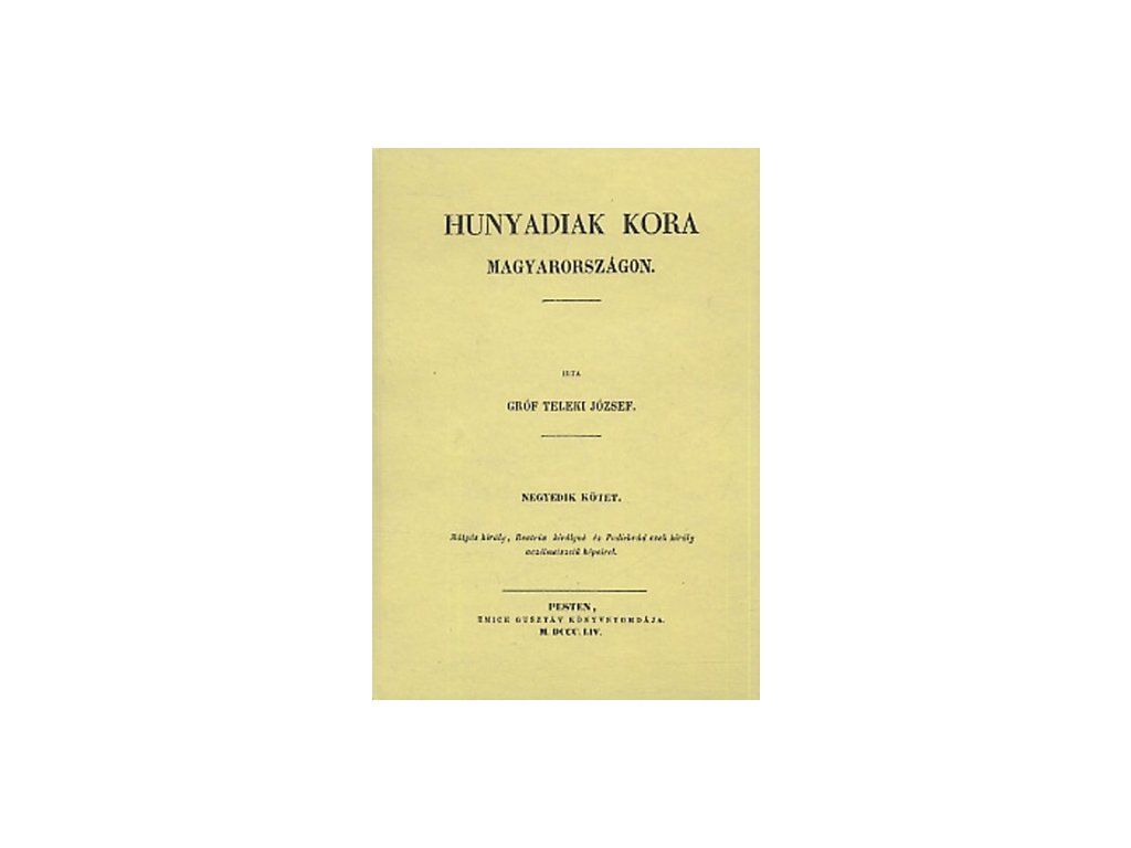 Teleki József monumentális művének első öt kötete a kor politikatörténeti összegzése Albert uralkodásának kezdetétől (1438) egészen Hunyadi Mátyás haláláig (1490). A X-XII. kötetek a témához kapcsolódó fontos dokumentumok okmánytára.Kiegészítő paraméterek