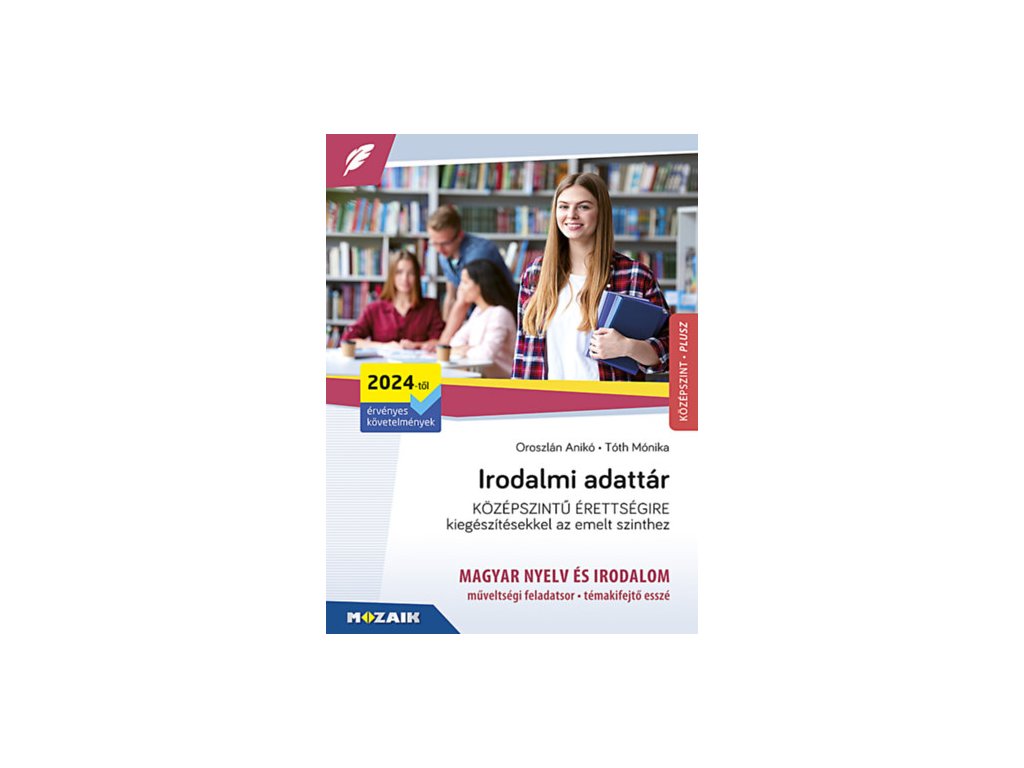 Az Irodalmi adattár középszintű érettségire elsősorban a 2024-től érvényben lévő magyar nyelv és irodalom írásbeli érettségi új elemeihez (az irodalmi feladatlaphoz és a témakifejtő esszéhez) nyújt segítséget. Röviden, tömören összefoglalja a legfontosabb tudnivalókat, praktikusan használható tanulássegítő kiadvány. Az áttekinthetőséget és az összefüggések megértését jól tanulható és átlátható grafikai szervezők (táblázatok, gondolattérképek, ábrák) segítik. Rendszerezi a négy év anyagának legfontosabb ismereteit: a korszakokat, a stílusirányzatokat, a műnemeket és műfajokat, az irodalmi témákat, toposzokat, motívumokat, a verstani és stilisztikai ismereteket. Tartalmazza a legfontosabb fogalmakat és azok meghatározásait, valamint megtalálhatók benne a kötelező olvasmányok összefoglalói és szereplői, a költők-írók múzsái is. Az új érettséginek megfelelő mintafeladatsorokkal segíti a felkészülőket, melyekhez megoldás is tartozik. A kiadvány elsősorban a középszintű érettségire készít fel, de több annál: hiszen számos olyan (elkülönítve is jelölt) elemet, áttekintést is tartalmaz, ami a középszinten túlmutat (pl. színház- és sajtótörténeti összefoglaló, egyéb kiegészítő anyagok), ezért az emelt szinten érettségizők számára is hasznos kézikönyv lehet.Kiegészítő paraméterek