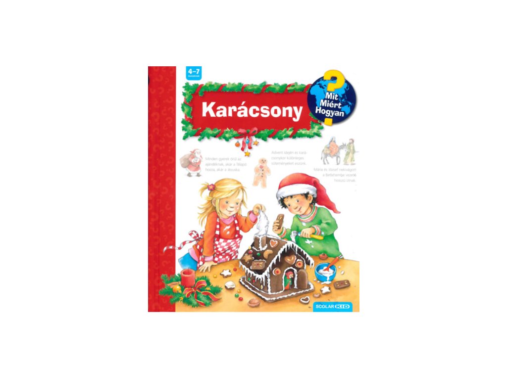A Ravensburger népszerű Mit? Miért? Hogyan? gyermekkönyvsorozatának 36. kötetét lapozgatva az óvodások és a kisiskolások a karácsonyi ünnepkörrel ismerkedhetnek. Megtudhatják többek között, mit ünneplünk karácsonykor, mi az az advent, miért kapnak a gyerekek ajándékot, honnan származik a karácsonyfa, hogyan ünnepelnek más országokban.Kiegészítő paraméterek