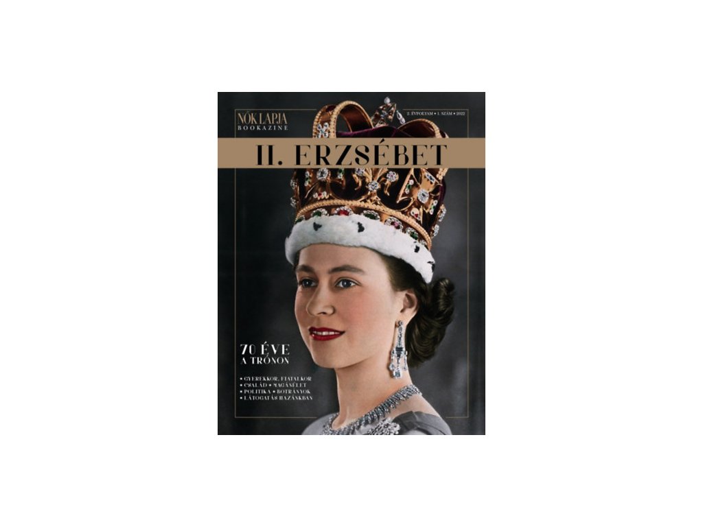 II. Erzsébet 1952. február 6-a óta ül a trónon. Jelenleg ő a leghosszabb ideig uralkodó nő a világon, és ez a hetven év adta az apropót a kiadvány megjelentetéséhez. II. Erzsébet eseménydús életét és munkásságát hat fejezetre osztva mutatjuk be. A kiadványban szó lesz Erzsébet gyermek- és ifjúkoráról, a beiktatásával és a koronázásával kapcsolatos kulisszatitkokról, érdekességekről. Részletesen taglaljuk a családot, különös tekintettel Erzsébet anyjára, az anyakirálynéra, akire a lánya mindig támaszkodhatott. Ezenkívül természetesen kitérünk Fülöpre, a királynő férjére, a húgára és a gyerekeire is. Sőt felgöngyölítjük a brit uralkodónő családjának magyar szálát, hiszen ükanyja Rhédey Klaudia grófnő volt. Nem lehet szó nélkül hagyni Erzsébet és a politika viszonyát: milyen előjogokkal rendelkezik a királynő a kinevezések terén, hogyan jött ki a miniszterelnökökkel, mekkora a királyi család befolyása, és miért fontos még ma is a monarchia? Az uralkodók magánélete mindig is az érdeklődés középpontjában állt, ezért bemutatjuk az olvasóknak a királynő otthonait, öltözködési stílusát, ékszereit, de nem feledkezünk meg II. Erzsébet humoráról sem, elvégre a jellegzetes angol humor nagyon is jellemző rá. A hitelesség kedvéért elkerülhetetlen, hogy kitérjünk a királyi család botrányaira, amelyekből régebben sem volt hiány, napjainkban viszont egyre sűrűbben követik egymást. Ennek apropóján találgatjuk, hogy vajon Erzsébet halála esetén betartják-e az előírás szerinti öröklési sorrendet, vagy a fia, Károly helyett az unokája, Vilmos lép-e a trónra. Végül, de nem utolsósorban megemlékezünk II. Erzsébet és a királyi család magyarországi látogatásairól, valamint az életükön alapuló, hatalmas sikerű Netflix-sorozatról, A koronáról, amelyet eleinte a királyi család is népszerűsített, ám később - a nézőkkel ellentétben - nemtetszésüket fejezték ki az újabb évadokkal kapcsolatban.Kiegészítő paraméterek